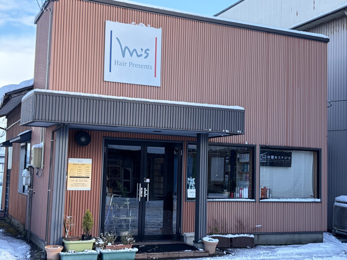 m's hair presents エムズ・ヘアプレゼンス・・・ 新潟市南区にある美容室 お客様1人1人にカット、カラー、パーマで髪や地肌に思いやりをプレゼント。 ナチュラルなヘアスタイルを提案します。TEL025-372-4809  営業時間 午前9時~午後6時30分